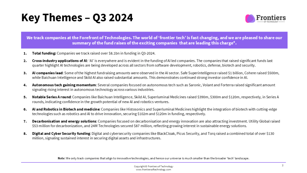 1.Total funding: Companies we track raised over $8.1bn in funding in Q3-2024.